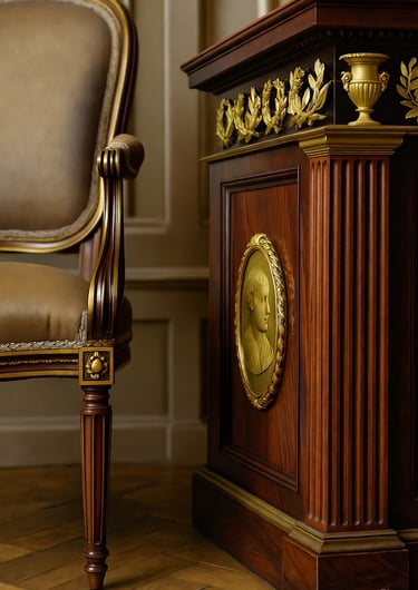 1760-aisiais Rokoko lengvabūdiškumas, pasižymėjęs kaprizingu grožiu, ėmė atrodyti pasenęs, o Neoklasicizmas (Liudviko XVI stilius) įnešė radikalių pokyčių – tiesias linijas, rifliuotas kojas ir antikinius motyvus, tokius kaip laurai (simbolizuojantys pergalę ir garbę), urnos (atspindinčios amžinybę) bei medalionai (vaizduojantys asmeninius portretus ar herbus). Georges Jacob kėdės su smailėjančiomis kojomis ir subtiliu auksavimu išlaikė Rokoko lengvumo ir grakštumo esmę, tačiau įvedė aiškią simetriją, taip užtikrindamos perėjimą nuo chaotiško dekoratyvumo prie harmoningos, tvarkingos elegancijos.