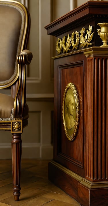 1760-aisiais Rokoko lengvabūdiškumas, pasižymėjęs kaprizingu grožiu, ėmė atrodyti pasenęs, o Neoklasicizmas (Liudviko XVI stilius) įnešė radikalių pokyčių – tiesias linijas, rifliuotas kojas ir antikinius motyvus, tokius kaip laurai (simbolizuojantys pergalę ir garbę), urnos (atspindinčios amžinybę) bei medalionai (vaizduojantys asmeninius portretus ar herbus). Georges Jacob kėdės su smailėjančiomis kojomis ir subtiliu auksavimu išlaikė Rokoko lengvumo ir grakštumo esmę, tačiau įvedė aiškią simetriją, taip užtikrindamos perėjimą nuo chaotiško dekoratyvumo prie harmoningos, tvarkingos elegancijos.