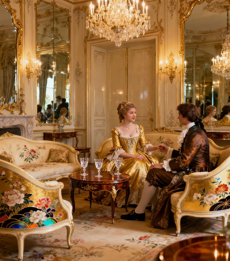 Rokoko meistrai kartais naudojo japonišką lako techniką, vadinamą vernis Martin, kuri imitavo brangų rytietišką laką, bet buvo prieinamesnė, leidžianti sukurti blizgius, spalvingus paviršius, kurie atspindėjo šviesą salonuose. Šis stilius buvo ne tik gražus, bet ir skirtas intymioms erdvėms, kur pokalbiai ir flirtai buvo tokie pat svarbūs kaip pats interjeras.